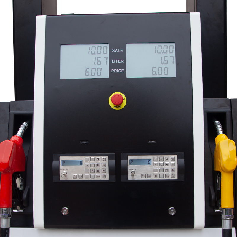 Surtidor de combustible con 2 mangueras, puede usarse para 2 productos.